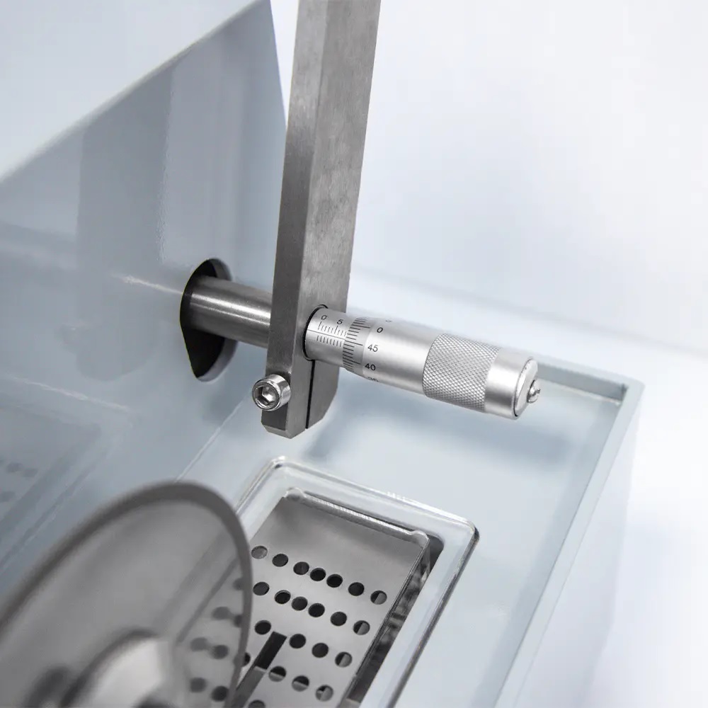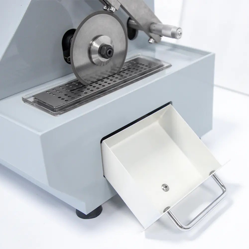 Nízkootáčková precízna píla CT-150A je vhodná na presné rezanie rôznych tvrdých materiálov, najmä na presné rezanie rôznych drobných kovových a nekovových súčiastok a rôznych elektronických súčiastok; Tento stroj môže byť vybavený diamantovými rezacími kotúčmi alebo rezacími čepeľami zo živice, aby vyhovovali rezaniu rôznych vzoriek. Tento stroj je vybavený rôznymi prípravkami na vzorky, ktoré dokážu umiestniť a rezať spracovaný predmet v najlepšom uhle a môžu realizovať bezobslužné spracovanie. Vreteno beží s vysokou presnosťou a môže presne dolaďovať horizontálnu polohu posuvu rezaného predmetu. Tento stroj je ideálnym zariadením na metalografickú predúpravu pre laboratóriá vysokých škôl, univerzít, vedecko-výskumných ústavov a výroby.